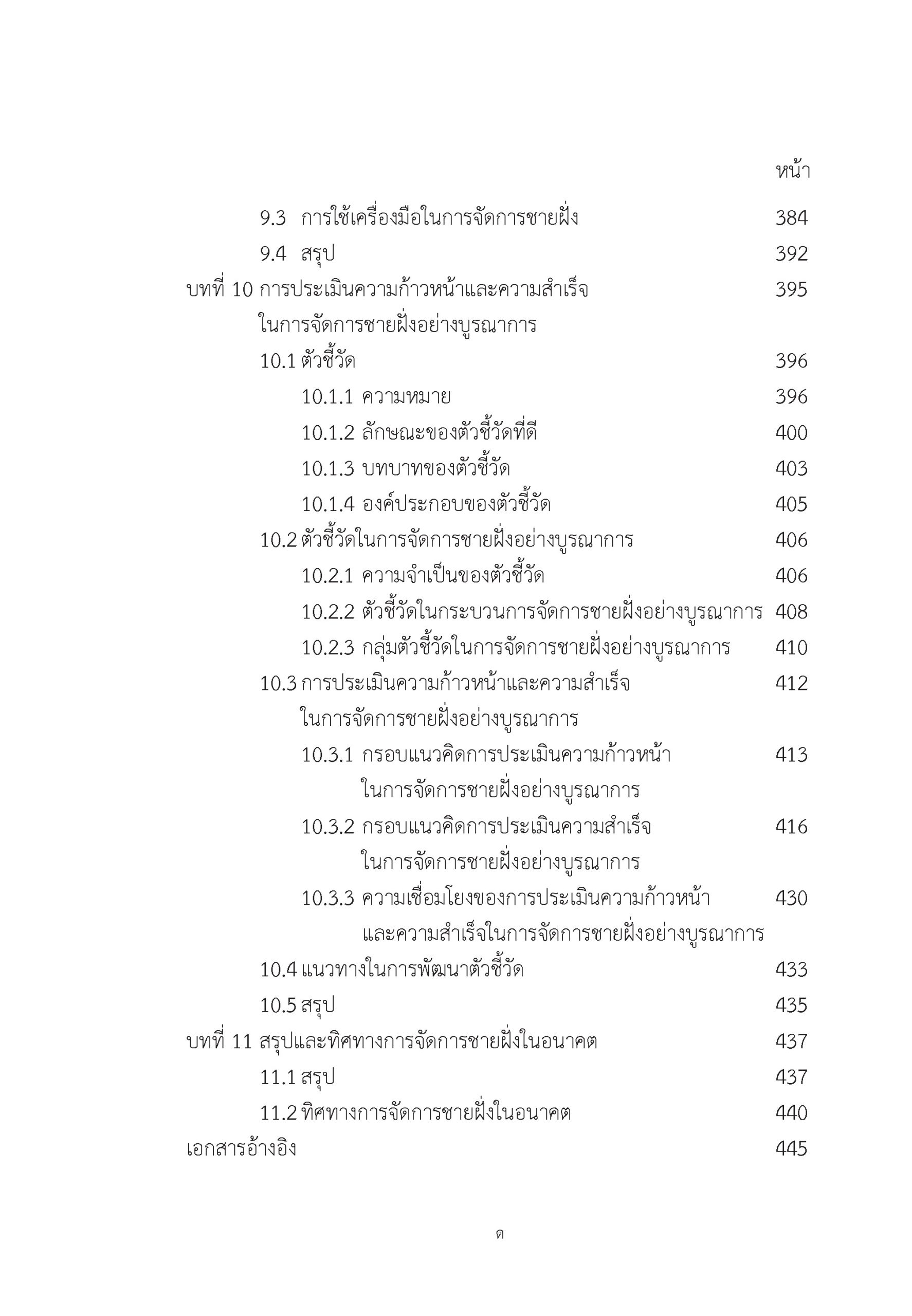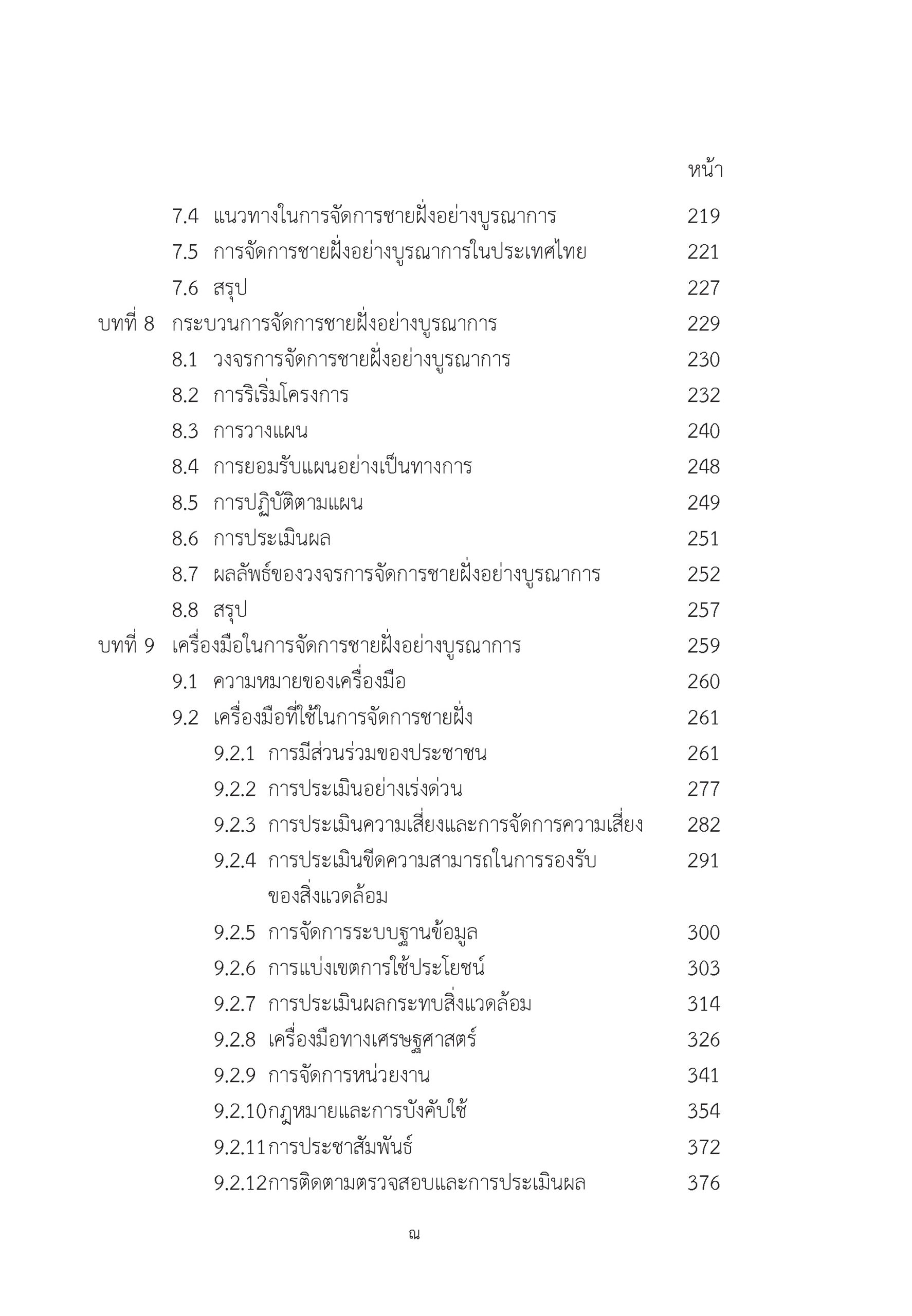 เรียบเรียงจากการศึกษาค้นคว้าและประสบการณ์การสอน การบรรยาย และการฝึกอบรมของผู้เขียน เนื้อหาภายในเล่มประกอบด้วย ความรู้พื้นฐานเกี่ยวกับการจัดการชายฝั่ง, ความจำเป็นในการจัดการชายฝั่ง, การจัดการชายฝั่ง, เครื่องมือในการจัดการชายฝั่ง ตลอดจนทิศทางและความท้าทายในการจัดการชายฝั่งอย่างบูรณาการ