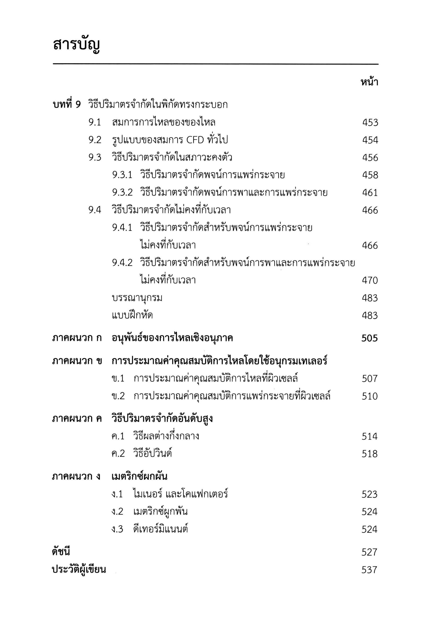 พื้นฐานของวิธีการคำนวณด้วยวิธีปริมาตรจำกัดกับปัญหาการไหล โดยอธิบายทฤษฎีทางกลศาสตร์ของไหลและวิธีการทางคณิตศาสตร์ในการนำสมการมาปรับใช้เพื่อให้คอมพิวเตอร์ช่วยวิเคราะห์และแสดงผล