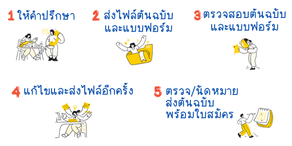 ติดต่อสำนักพิมพ์ฯ เพื่อรับคำปรึกษาในการเตรียมต้นฉบับและแบบฟอร์มเบื้องต้น
