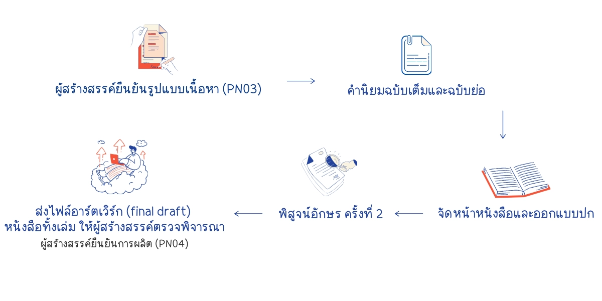 ผู้สร้างสรรค์ส่งต้นฉบับพร้อมแบบฟอร์ม และสำนักพิมพ์ฯ ตรวจทาน ดังนี้