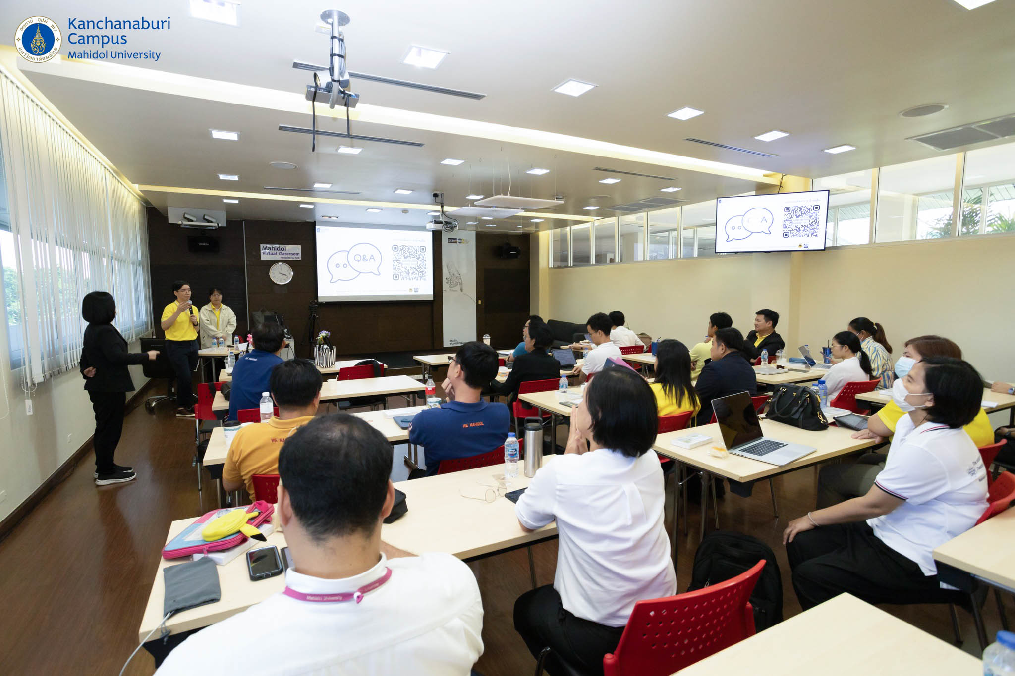 ทีมงานจากสำนักพิมพ์มหาวิทยาลัยมหิดลได้บรรยายและให้ข้อมูลเกี่ยวกับแนวทางการเตรียมต้นฉบับ การจัดการด้านลิขสิทธิ์เบื้องต้นที่เกี่ยวข้องกับการเขียนหนังสือ/ตำรา และขั้นตอนการทำงานของสำนักพิมพ์ฯ เพื่อสร้างความเข้าใจที่ถูกต้องแก่อาจารย์และบุคลากรจากวิทยาเขตกาญจนบุรี จำนวน 22 ท่านที่ลงทะเบียนเข้าฟังบรรยาย