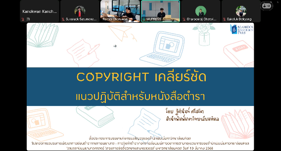 โครงการจัดตั้งวิทยาเขตนครสวรรค์ มหาวิทยาลัยมหิดล เชิญสำนักพิมพ์มหาวิทยาลัยมหิดลจัดกิจกรรมสัญจร (Roadshow) บรรยาย หัวข้อ “การพัฒนาการเขียนตำราทางการพยาบาล: การจัดทำตำราทางวิชาการตามกระบวนการของสำนักพิมพ์มหาวิทยาลัยมหิดล” ในวันที่ 19 มีนาคม 2568 เวลา 9.00-12.00 น. ผ่านระบบออนไลน์ โดยได้รับเกียรติจาก ศาสตราจารย์ นายแพทย์วรพงษ์ มนัสเกียรติ รองอธิการบดีฝ่ายวิชาการและบริการวิชาการ มหาวิทยาลัยมหิดล เป็นประธานกล่าวเปิด และกล่าวรายงานโดยอาจารย์ พญ.มนทกานติ์ โอประเสริฐสวัสดิ์ รองอธิการบดีฝ่ายโครงการจัดตั้งวิทยาเขตนครสวรรค์ มหาวิทยาลัยมหิดล