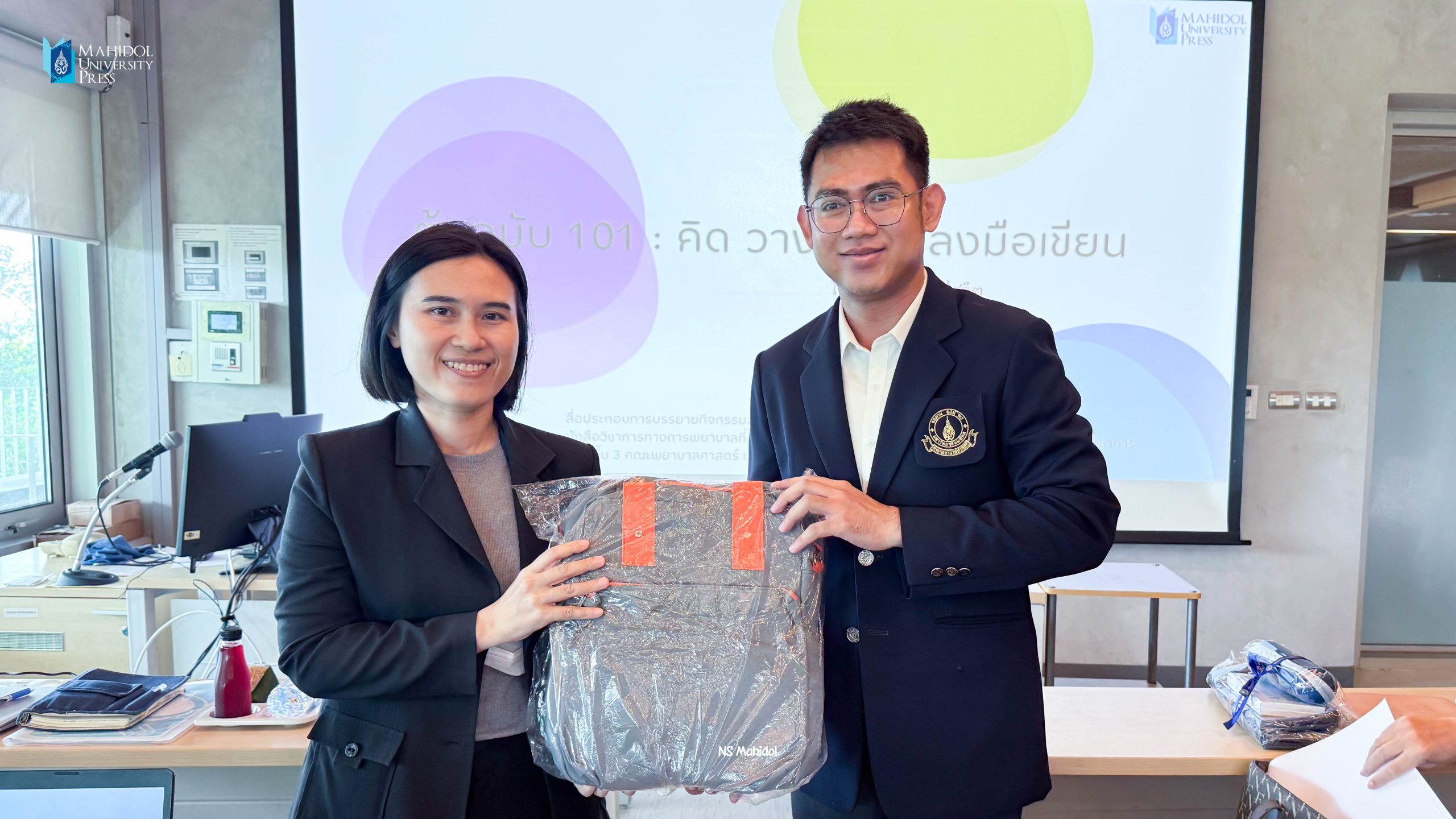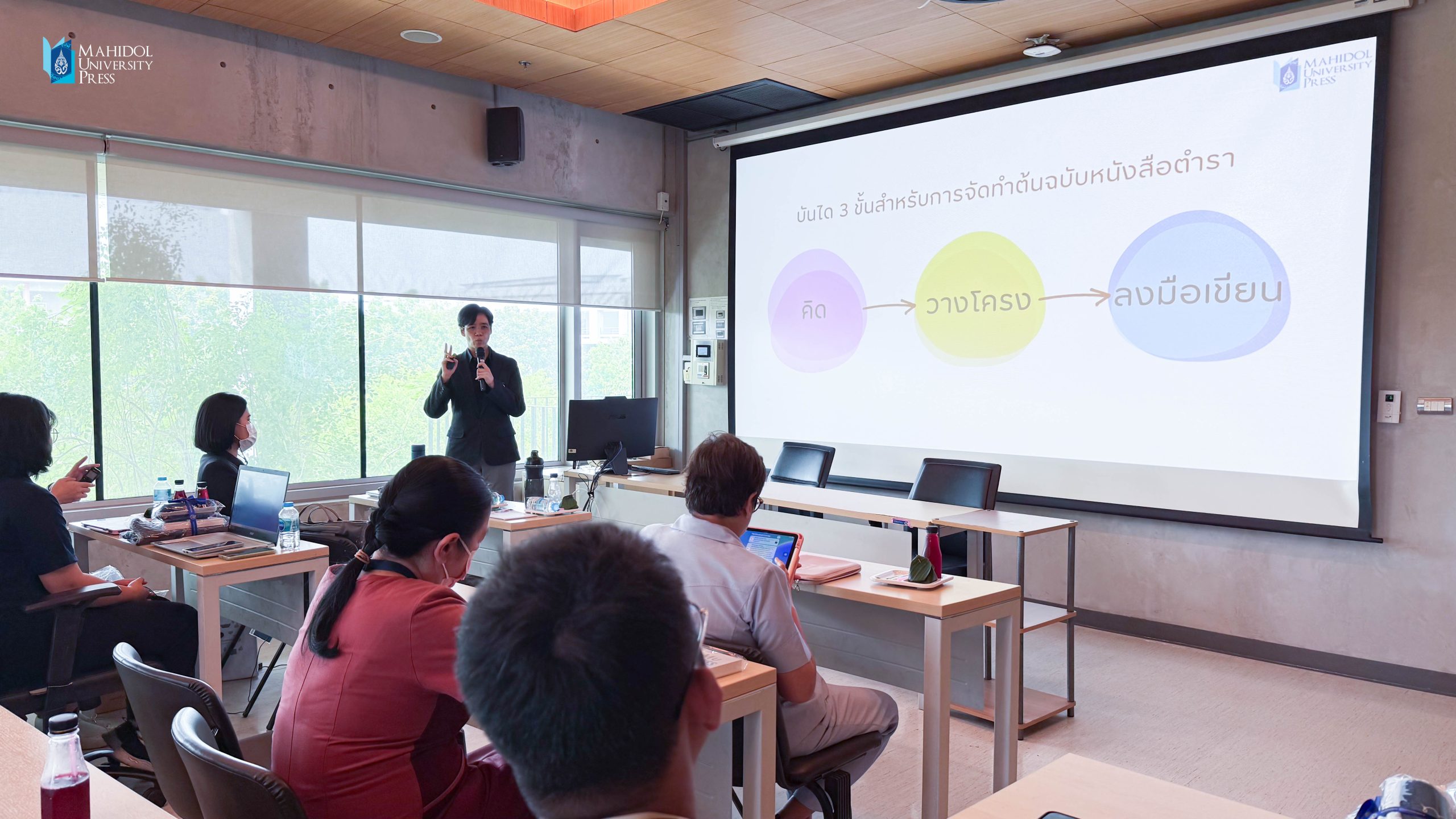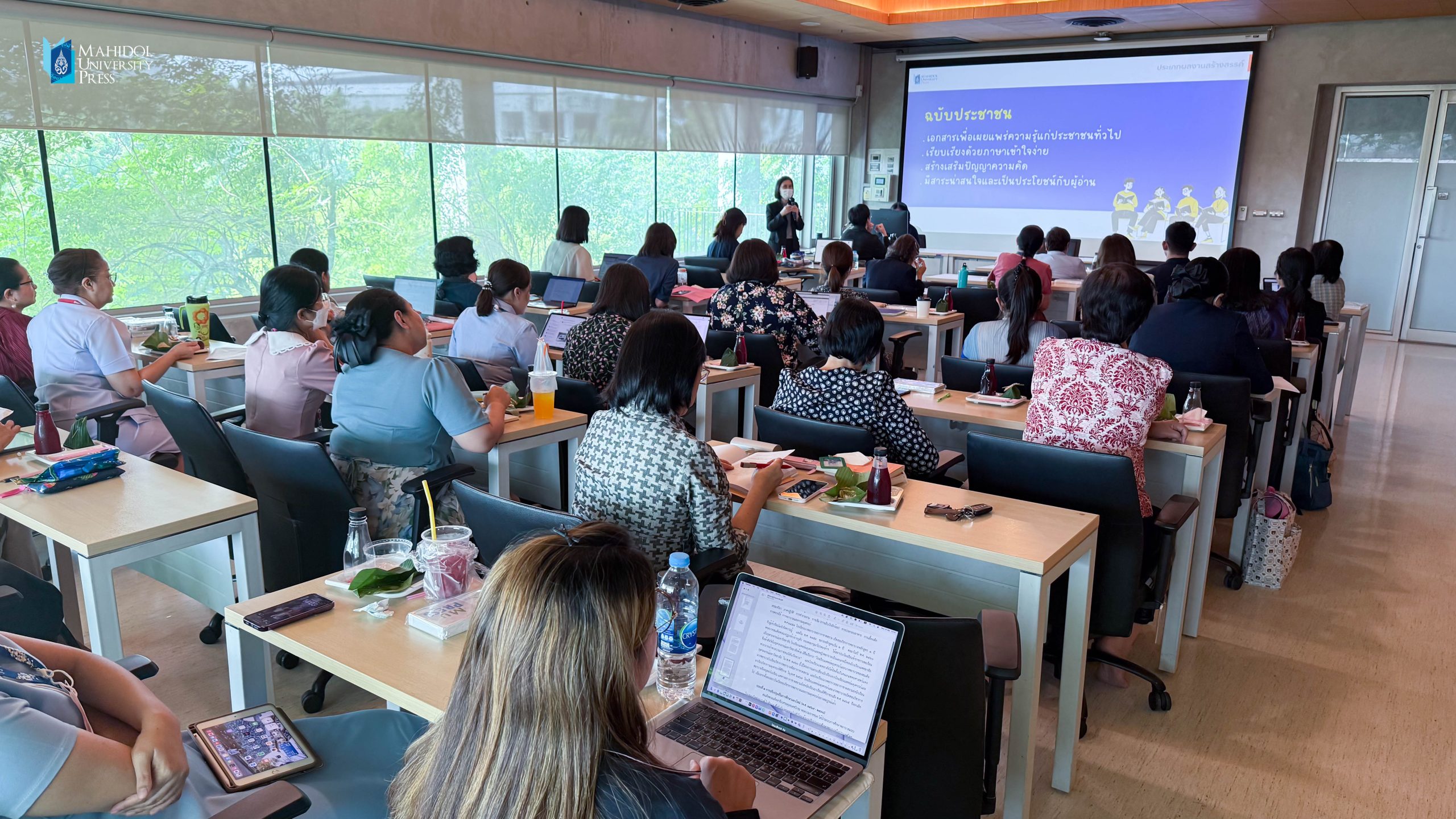 ทีมงานจากสำนักพิมพ์มหาวิทยาลัยมหิดลได้บรรยายและให้ข้อมูลเกี่ยวกับแนวทางการเตรียมต้นฉบับ การจัดการด้านลิขสิทธิ์เบื้องต้นที่เกี่ยวข้องกับการเขียนหนังสือ/ตำรา และขั้นตอนการทำงานของสำนักพิมพ์ฯ เพื่อสร้างความเข้าใจที่ถูกต้องแก่อาจารย์และบุคลากรจากคณะพยาบาลศาสตร์ จำนวน 31 ท่านที่ลงทะเบียนเข้าฟังบรรยาย