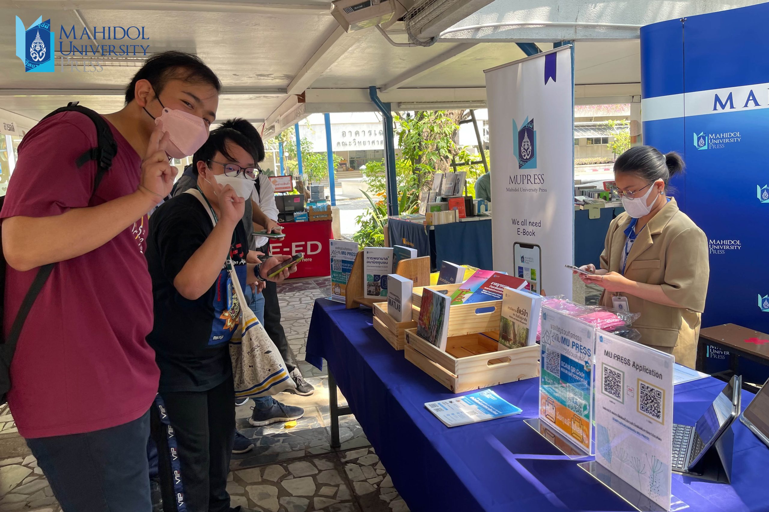สำนักพิมพ์มหาวิทยาลัยมหิดลได้รับเชิญจากคณะวิทยาศาสตร์ให้จัดกิจกรรมสัญจร (Roadshow) ในวันที่ 1 มีนาคม 2566 โดยเป็นส่วนหนึ่งของงาน BookDay@Mahidol Science ระหว่างวันที่ 1-3 มีนาคม 2566 ซึ่งรองศาสตราจารย์ ดร.พลังพล คงเสรี คณบดีคณะวิทยาศาสตร์ ให้เกียรติเป็นประธานในพิธีเปิด ร่วมด้วย รองศาสตราจารย์ ดร.กิตติศักดิ์ หยกทองวัฒนา รองคณบดีฝ่ายการศึกษาและพัฒนานักศึกษา และ ศาสตราจารย์ ดร.สุวลักษณ์ สาธุมนัสพันธุ์ ผู้จัดการสำนักพิมพ์มหาวิทยาลัยมหิดล ณ บริเวณลานกิจกรรม ตึกฟิสิกส์